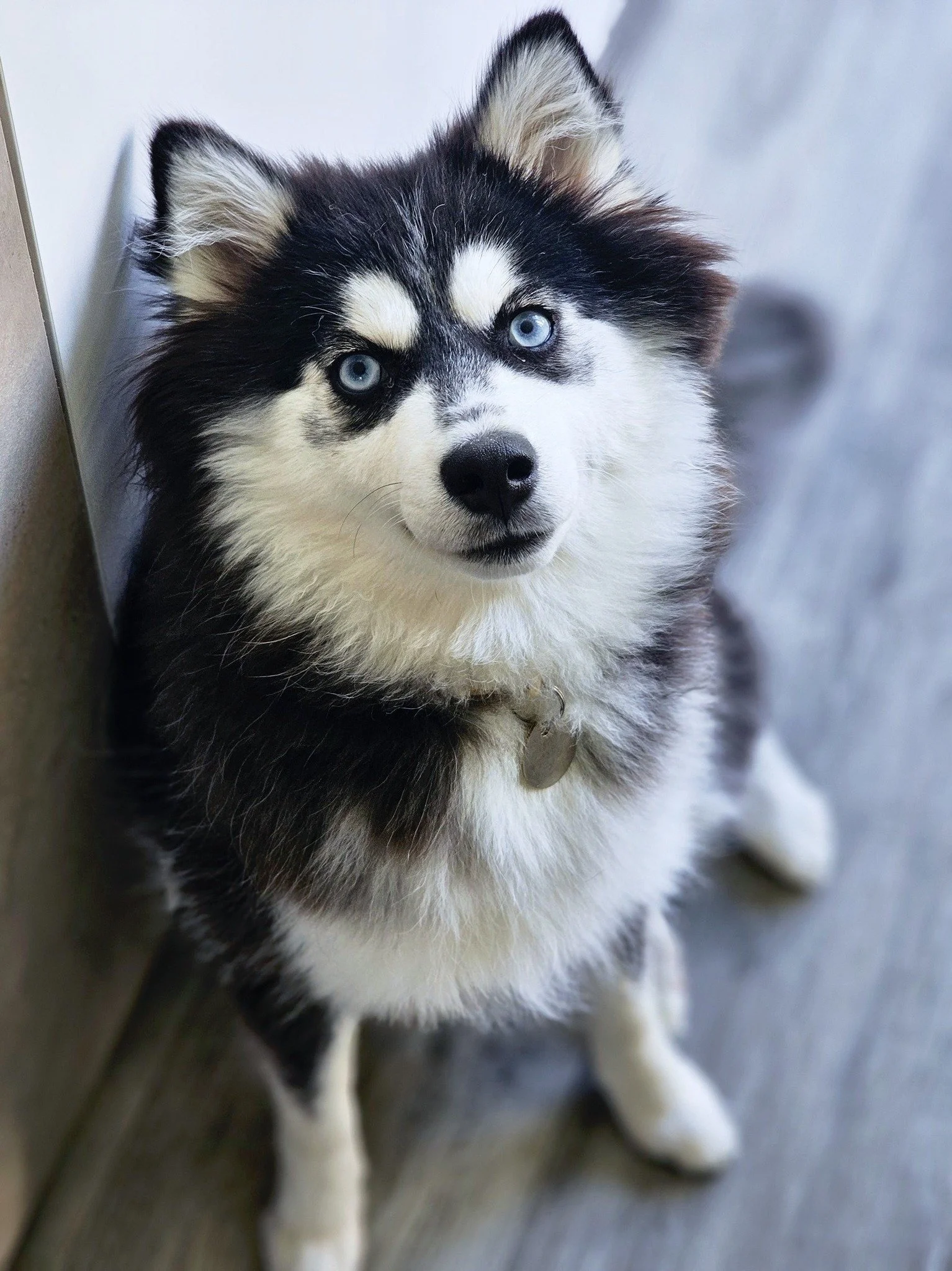 Indy is an F4 Blue Pomsky and can produce gorgeous rare blue and lilac husky marked babies.