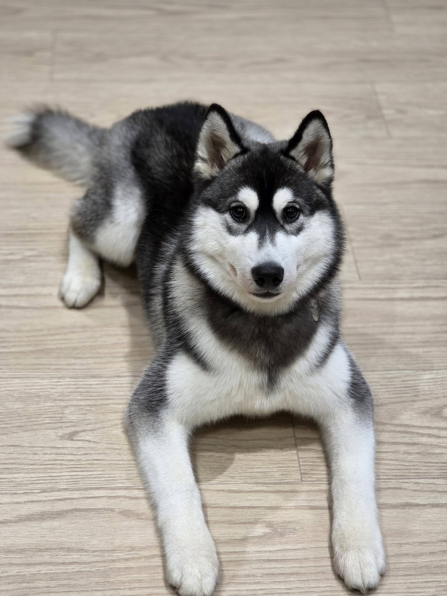 Lyra is our gentle giant, our big floofy grey baby. Lyra is a DNA verified F2 Pomsky bred here at Prestige Pomskies.